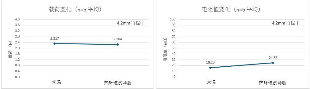 将探针每小时放置在-40℃和120℃的环境中,重复此操作10次,观察载荷和电阻值的变化。