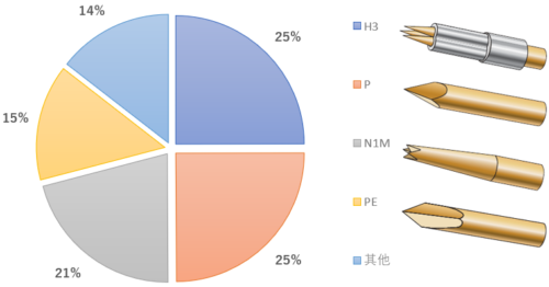 <各形状探针的销售业绩比例>